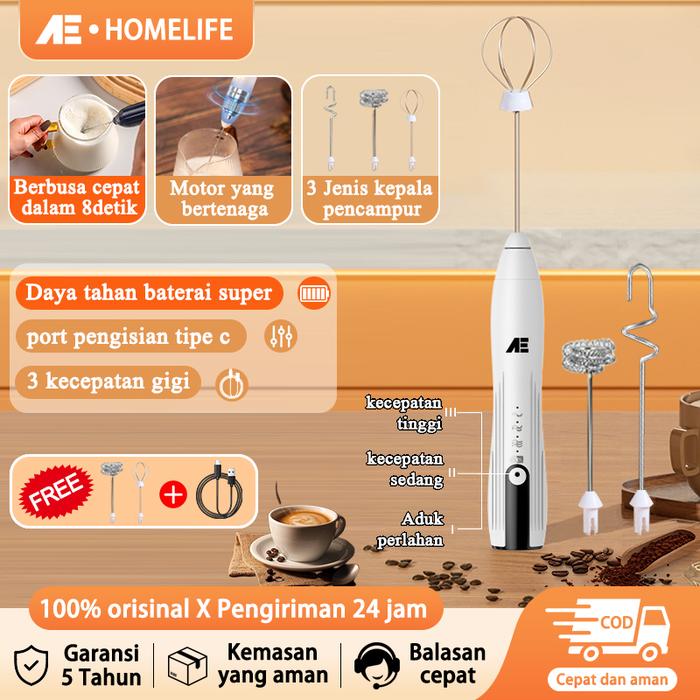 AE Mixer Kopi Hand Mixer Mini Pengocok Kopi Elektrik 1500mAh USB Rechargeable 3 IN 1 cosmos blender
