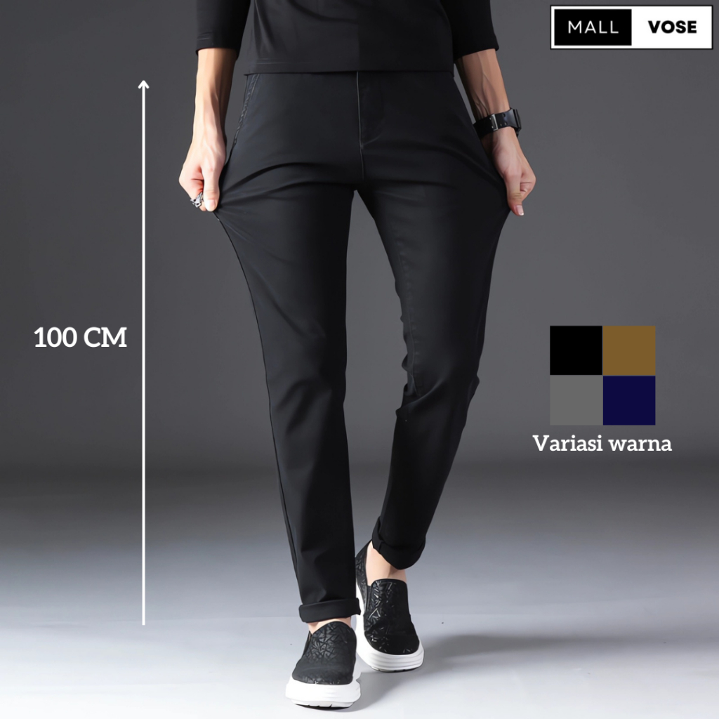 Mallvose - Celana Pria Chino Premium Panjang 100cm Black Slimfit