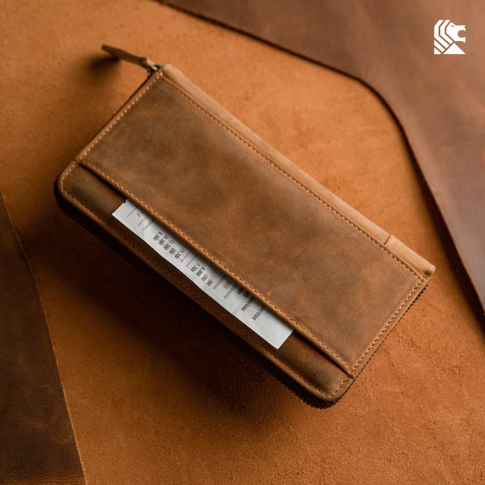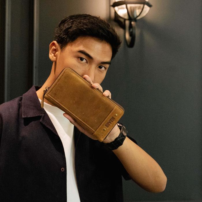 Reven Leather Abimana Mini Pouch – Dompet Kulit Sapi Asli Free Bonus Muat Hp, Uang & 12 Slot Kartu - Tan, Regular