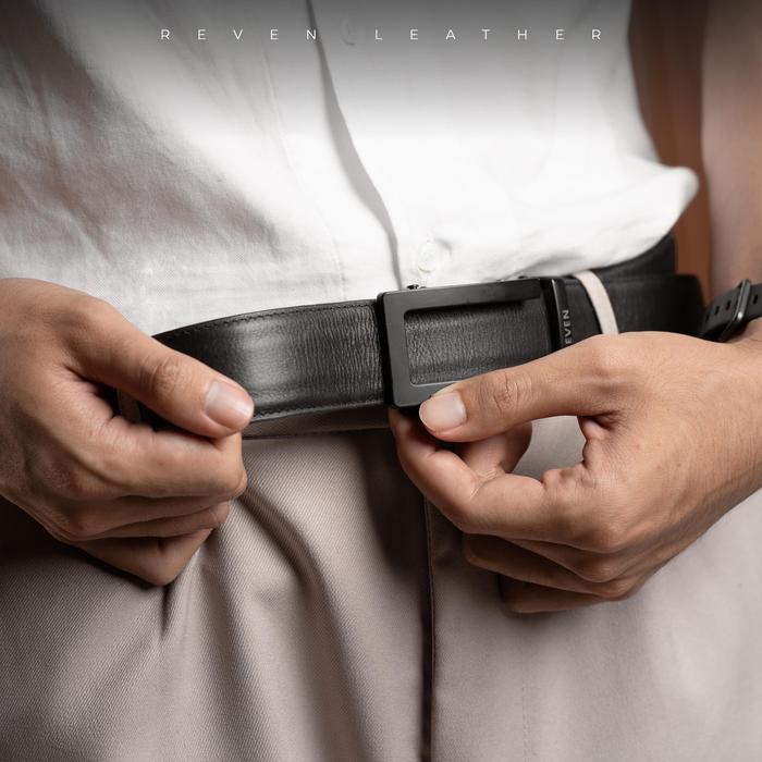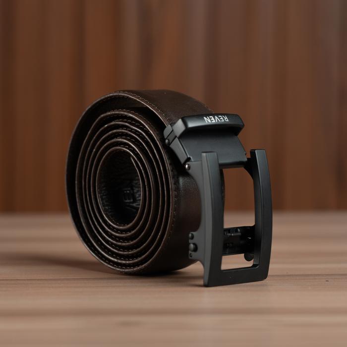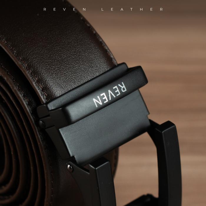 Reven Leather Bisma Belt - Ikat Pinggang Sabuk Pria Model Terbaru Kulit Sapi Asli Free Dompet Stnk Elegan Coklat Dewasa