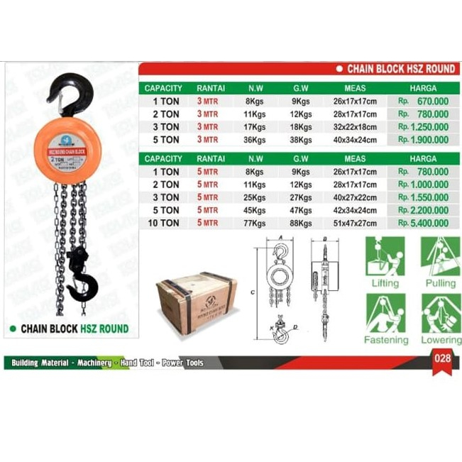 Chain Block 1 Ton 3 5 Meter WHITE BIRD Hoist Manual / Katrol Takel Kerekan 1Tx3M 1Tx5M WHITEBIRD