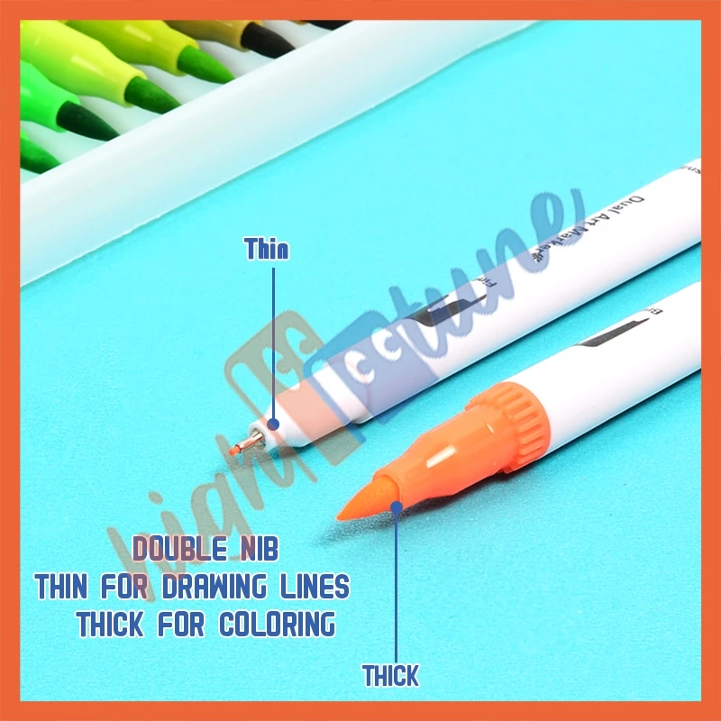 Hightune Spidol Warna Set 12/36/60/80/100/120 Spidol Brush Pen 2 Tips Spidol Set Marker Drawing Pen