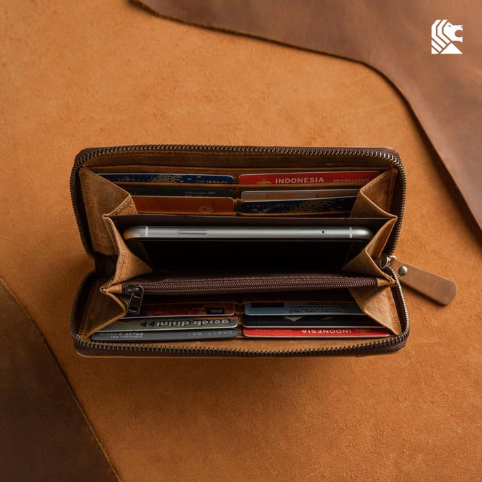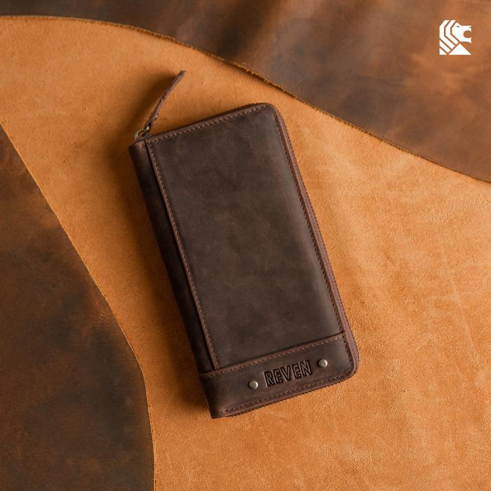 Reven Leather Abimana Mini Pouch – Dompet Kulit Sapi Asli Free Bonus Muat Hp, Uang & 12 Slot Kartu - Tan, Regular