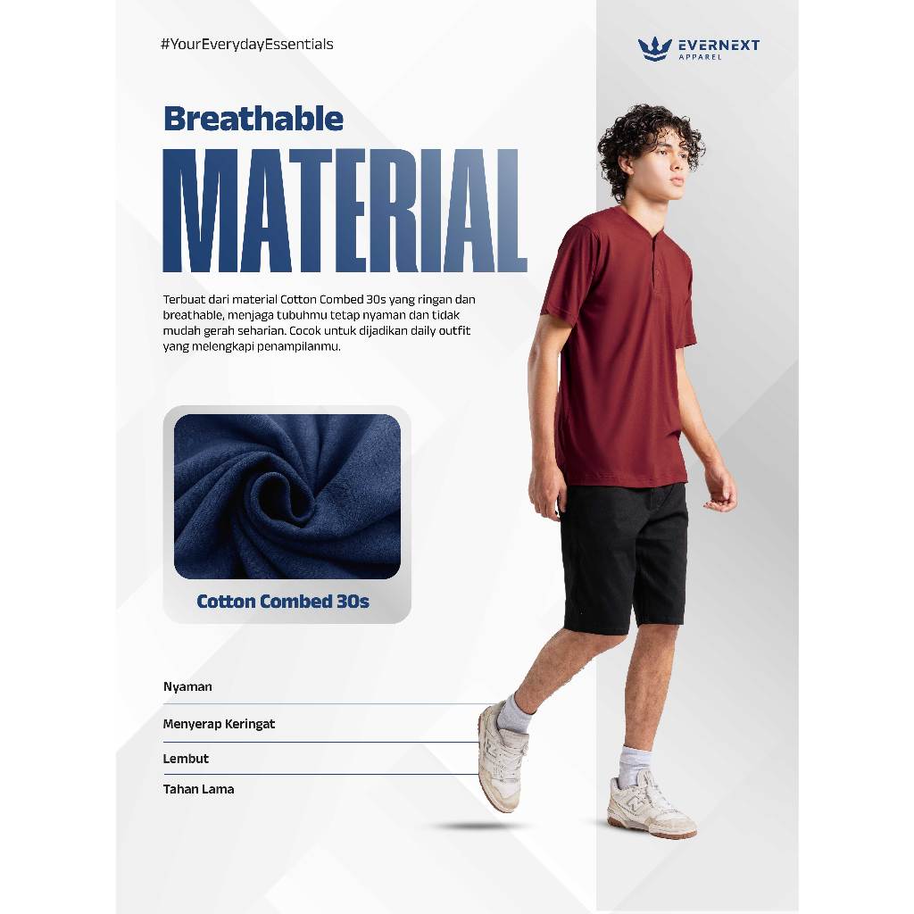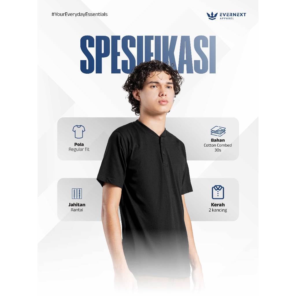 Evernext - Kaos Polos Pria Henley Tee Kaos Kancing Lengan Pendek Basic T-Shirt Combed 30s Pria