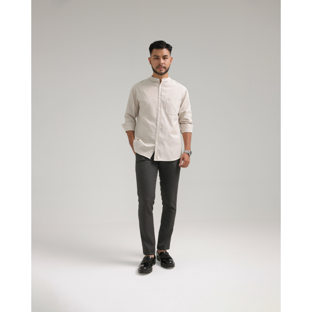 Broodis Kemeja Koko COZY Series Pria Cotton Oxford Beige Kerah Shanghai Lengan Panjang