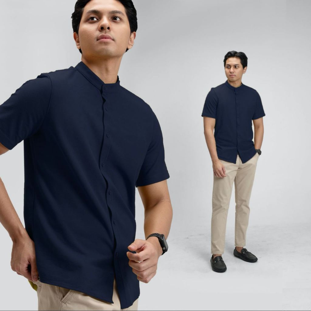 CUTOFF Brave Collarless Shirt Kemeja Koko Pique Polos Pria Lengan Pendek