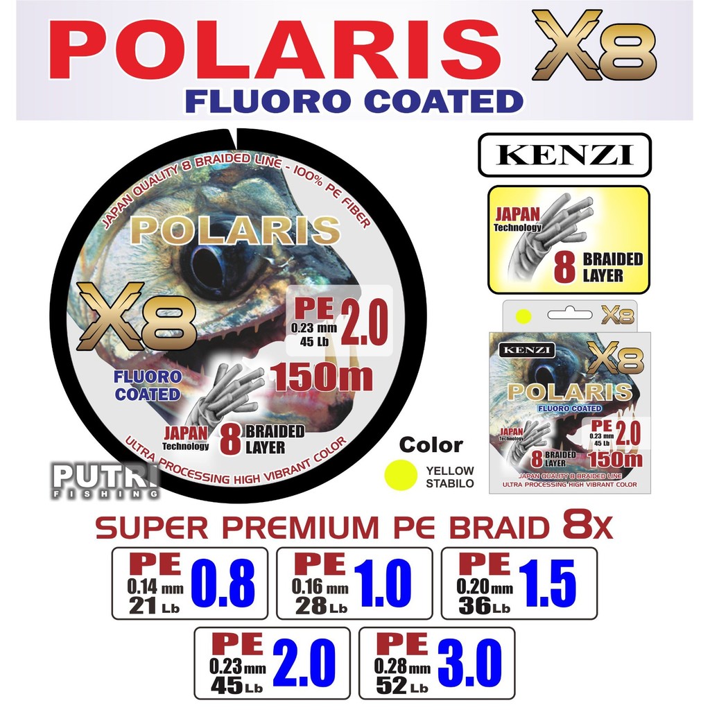 PE KENZI POLARIS X8 150m Pe Braid – Senar Pancing 8 Lapis Fluoro Coated Kuat Lembut Anti Kusut