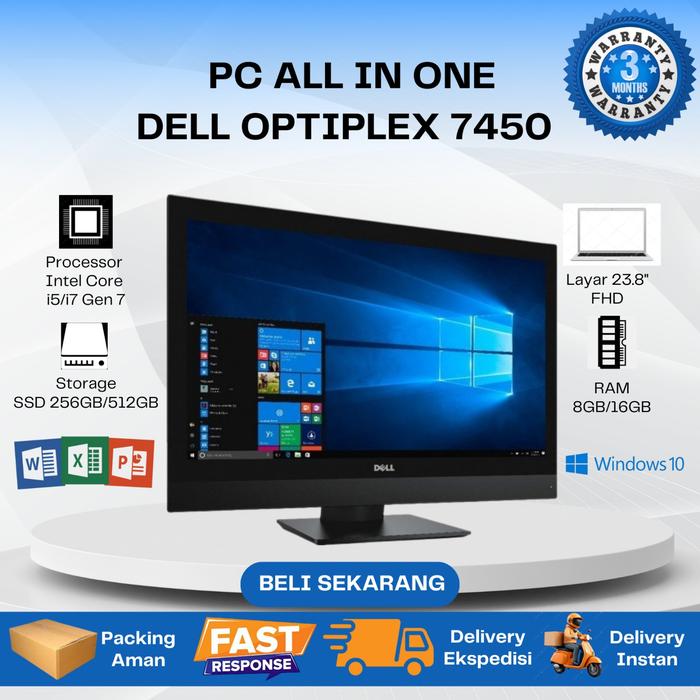 All In One () Pc Dell Optiplex 7450 - Intel Core I7 Atau I5 Gen 7 / Ram Ddr4 8Gb / Ssd 256Gb / 23.8" Fhd / Free Wirel