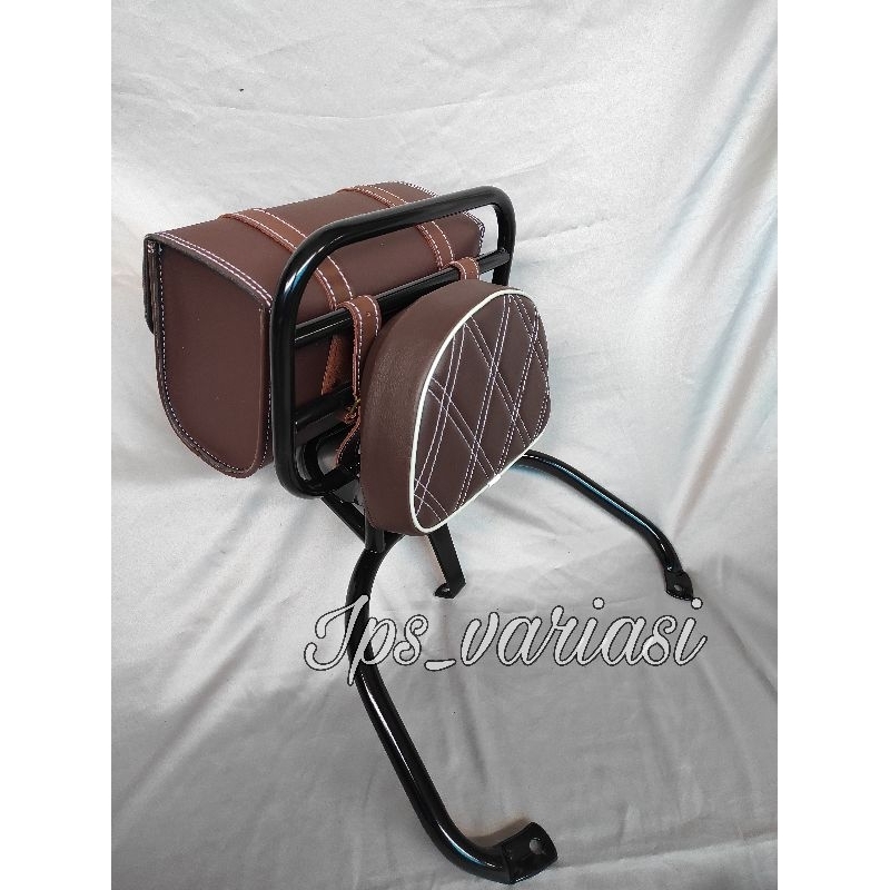 Back rack benelli shiny / sandaran belakang keeway shiny bantalan plus tas beneli model retro klasik