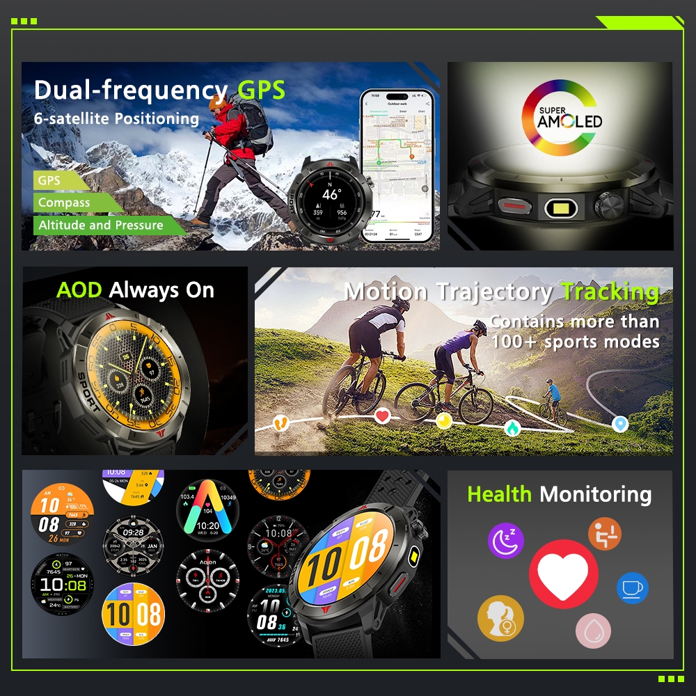 Aolon Navi R4 Smartwatch Aomled AOD Dual-band GPS IP68 Panggilan Bluetooth Strava Terhubung Pemantauan