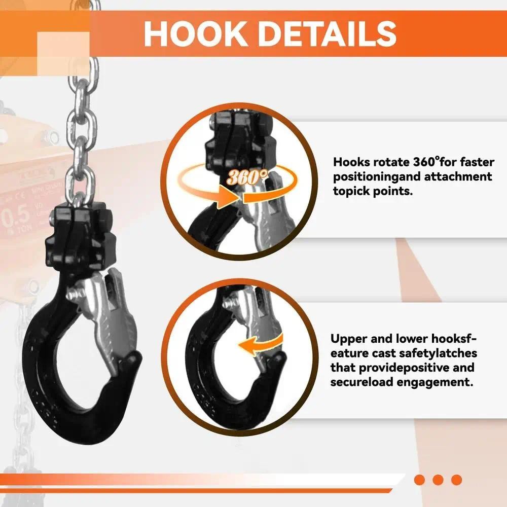 Manual Chain Hoist Lifting Height Industrial Grade Steel Hand Chain Hoist Block Tackle Hook Latch Easy Operation Durable
