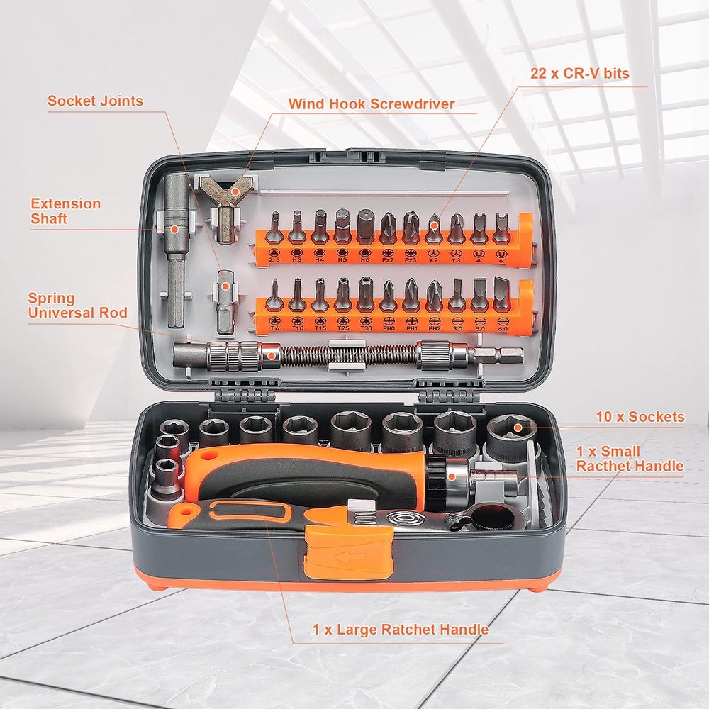 38 In 1 Set Obeng Ratchet Set Socket Wrench Kunci Pas Presisi yang Dapat Disesuaikan Dengan Kit Alat Rumah Tangga Gagang