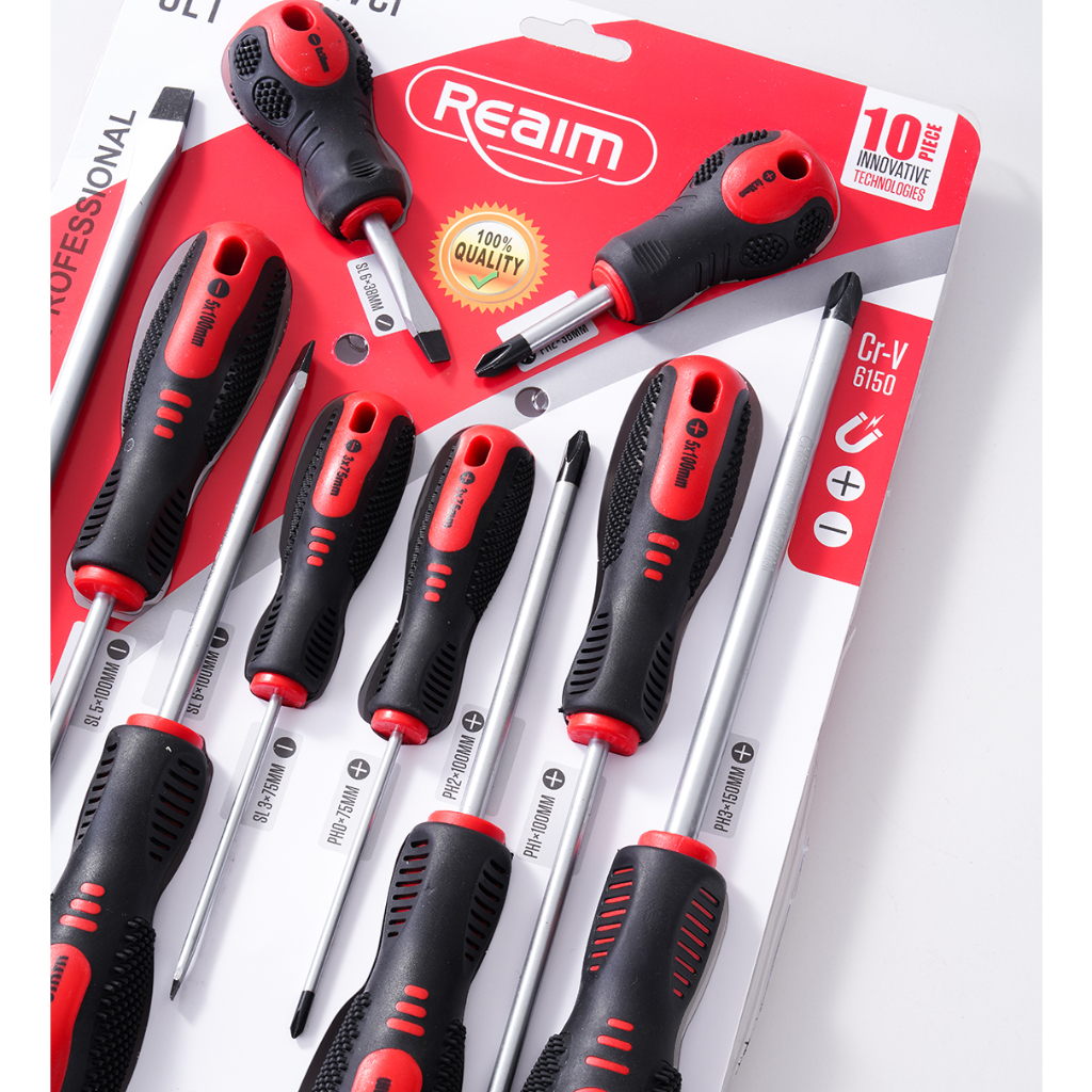 Reaim Set Obeng 10/6/4pcs set obeng presisi dengan pegangan karet (Philip/Flat)