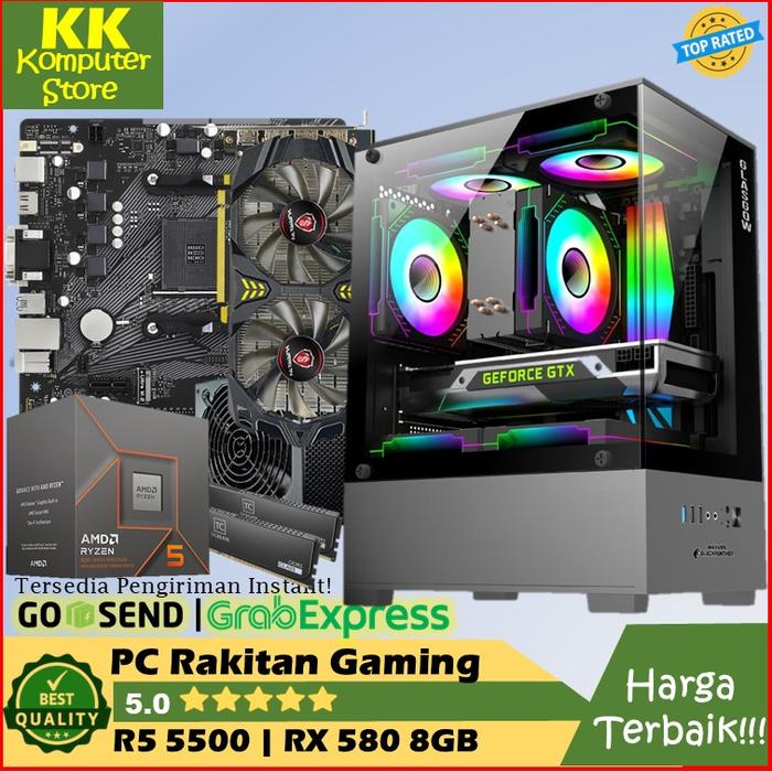 Pc Rakitan Gaming Ryzen 5 5500 | Rx 580 8Gb|Ssd Nvme 256Gb|Hardisk 500G [ Pc Only / Fulset Monitor ] - Pc Only