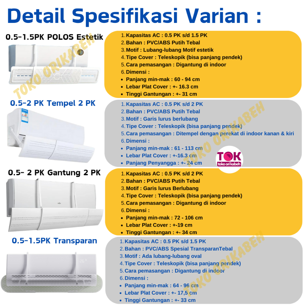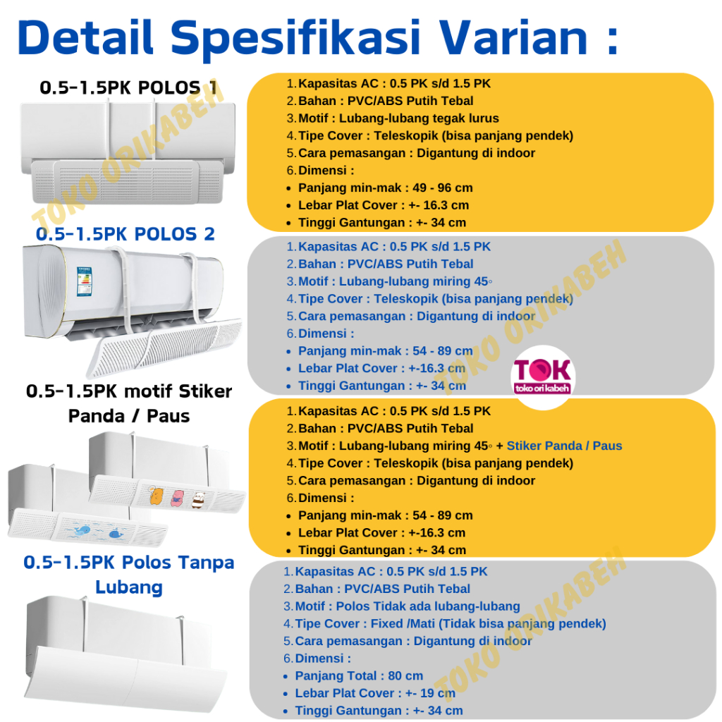 Cover Penahan Hembusan Angin Indoor AC Penghalang Hembusan AC Kamar Rumah Kantor Talang AC Reflektor 0,5 PK 1/2 PK 1/2P