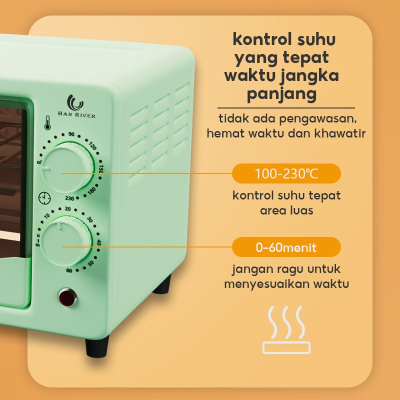 [Pengiriman dari Pontianak]HAN RIVER Oven Listrik Low Watt 800W Multifungsi Oven Listrik 12L
