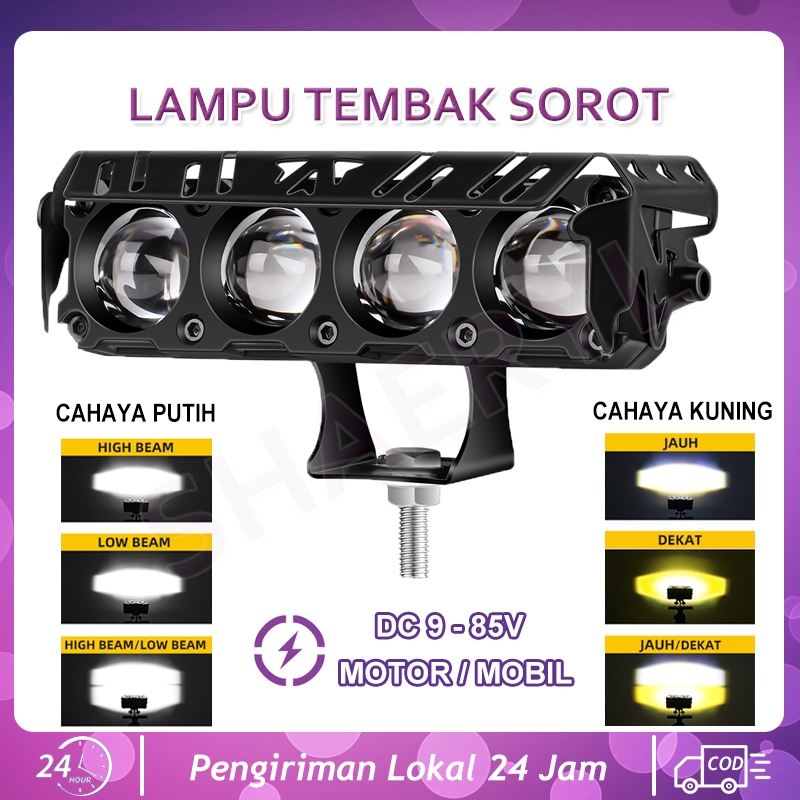 Lampu Tembak Laser SQL 4 Mata 200W 10000LM IP68 DC 9V-85V Lampu Putih 6000K/Lampu Kuning 3000K