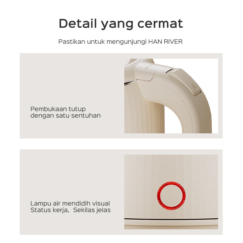 HAN RIVER HRDSH01 Teko Listrik Air Kaca Stainless Steel Transparan Kettle Boiling Water 2.5L