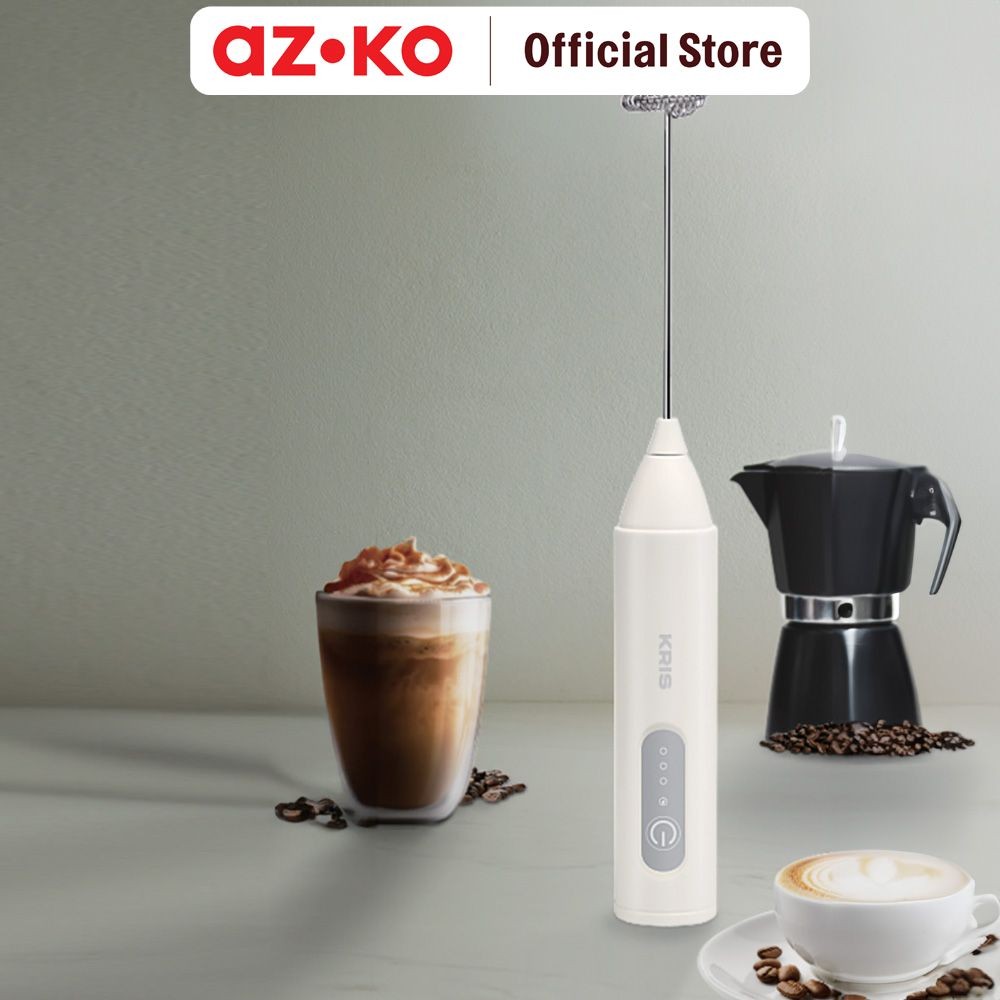 AZKO Kris Milk Frother Handheld 400 Mah - Putih Pembuih Susu Pengaduk Kopi Cokelat Cappucino Alat Pembuat Busa Susu Perl