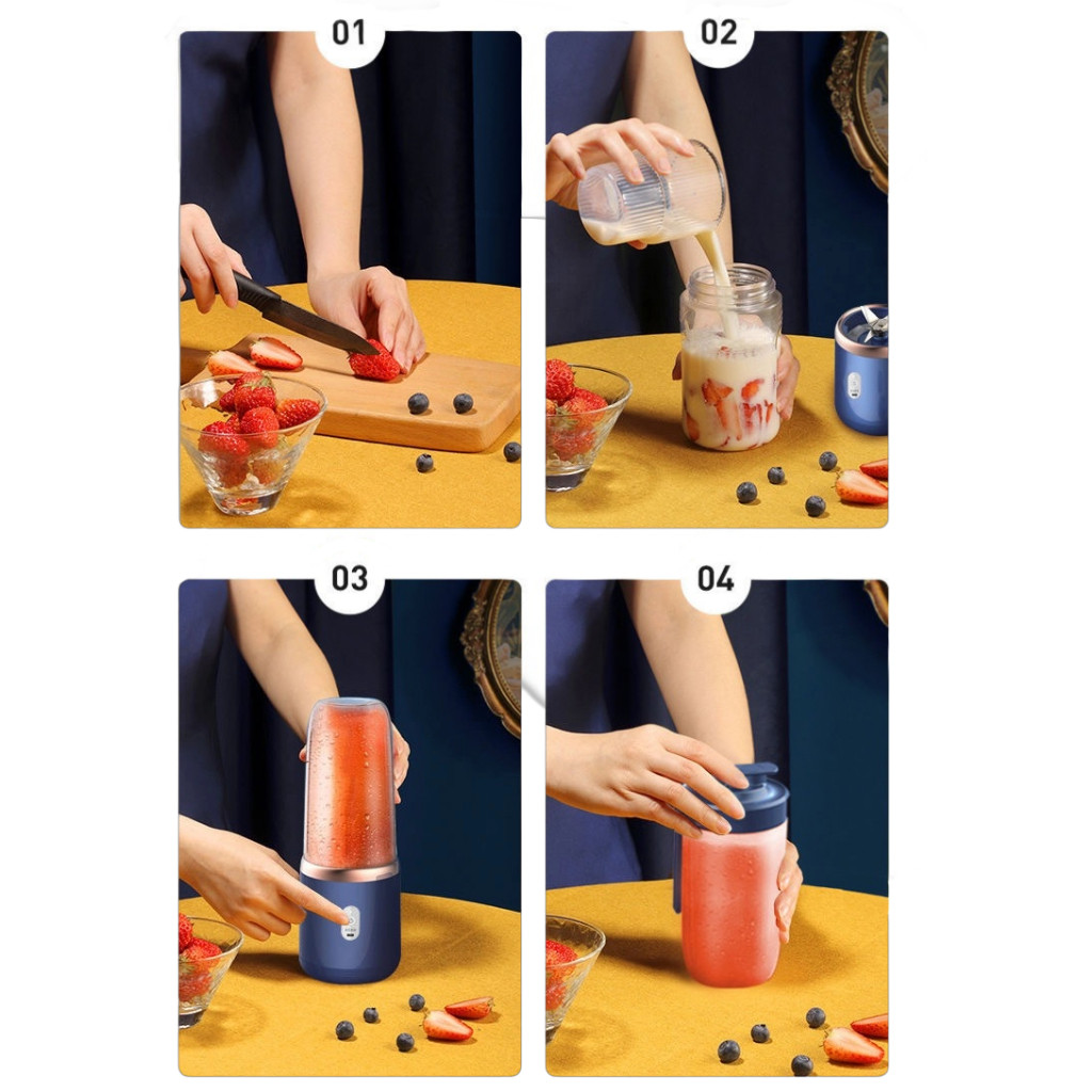 【6 Pisau】Portable Mini Juicer Blender 400ml Dual Motor 6 Sharp Blades USB Rechargeable Ice Crushing