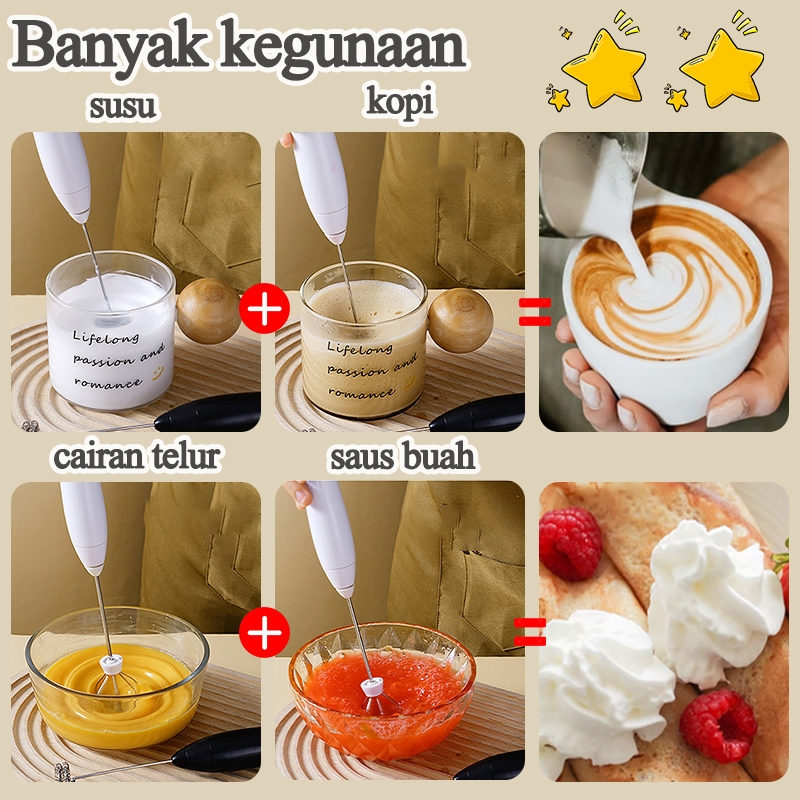 AE Hand Mixer Mini Hand Blender Portable Milk Frother Pengocok Telur Pengaduk Kopi Elektrik 3 IN 1 Portable USB Recharge