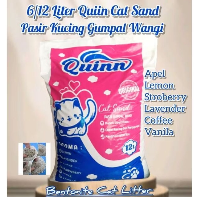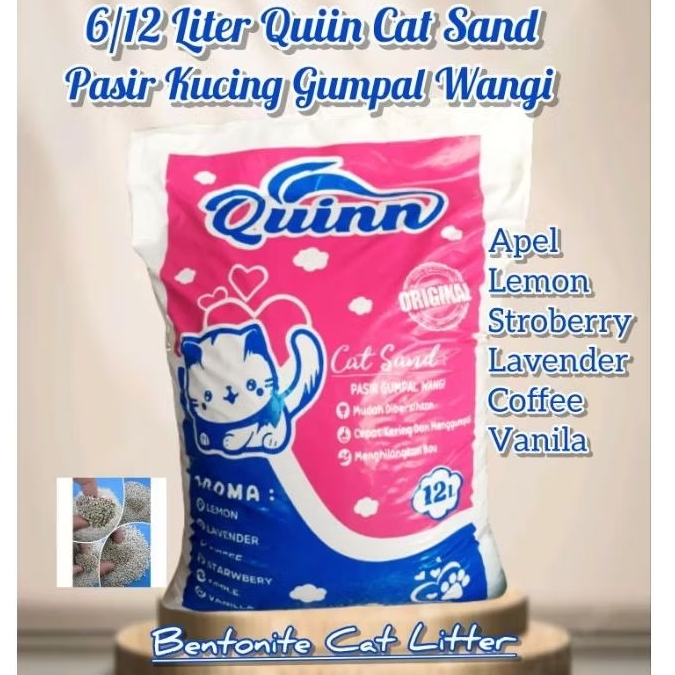 Promo 12 Liter Pasir Kucing Gumpal Wangi QUINN Cat Litter-Anti Bakteri