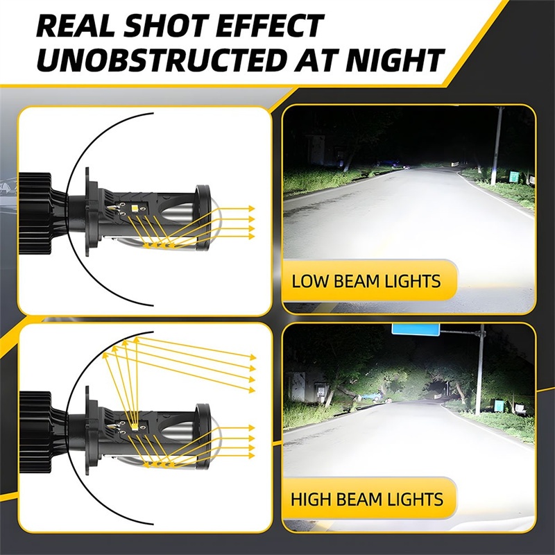 Lampu Led Mobil Dan Motor Y8D H4 Mini Projector Projie Daya Tinggi 80 Watt Dengan Kipas Lensa Cahaya Ganda Super Bright