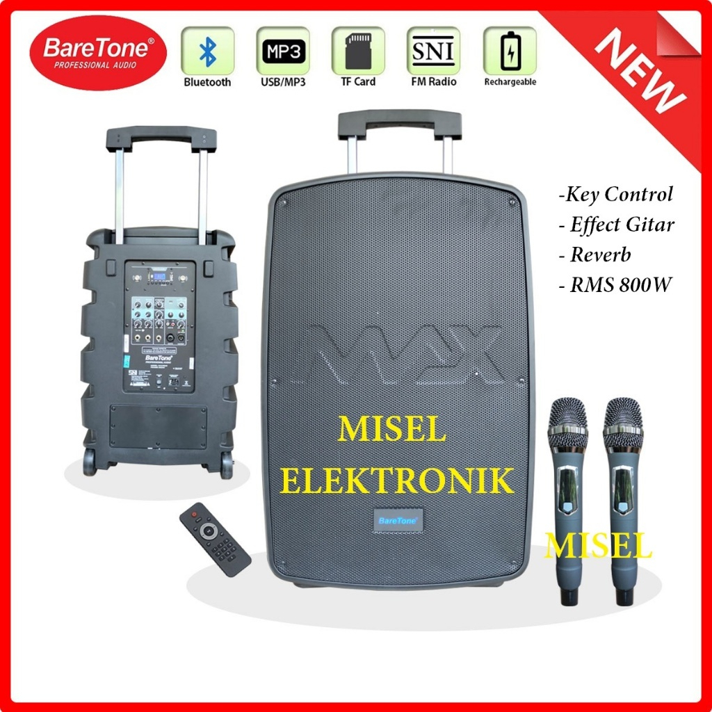 SPEAKER PORTABLE MEETING WIRELESS 15 INCH BARETONE MAX15NB 800WATT USB BLUETOOTH
