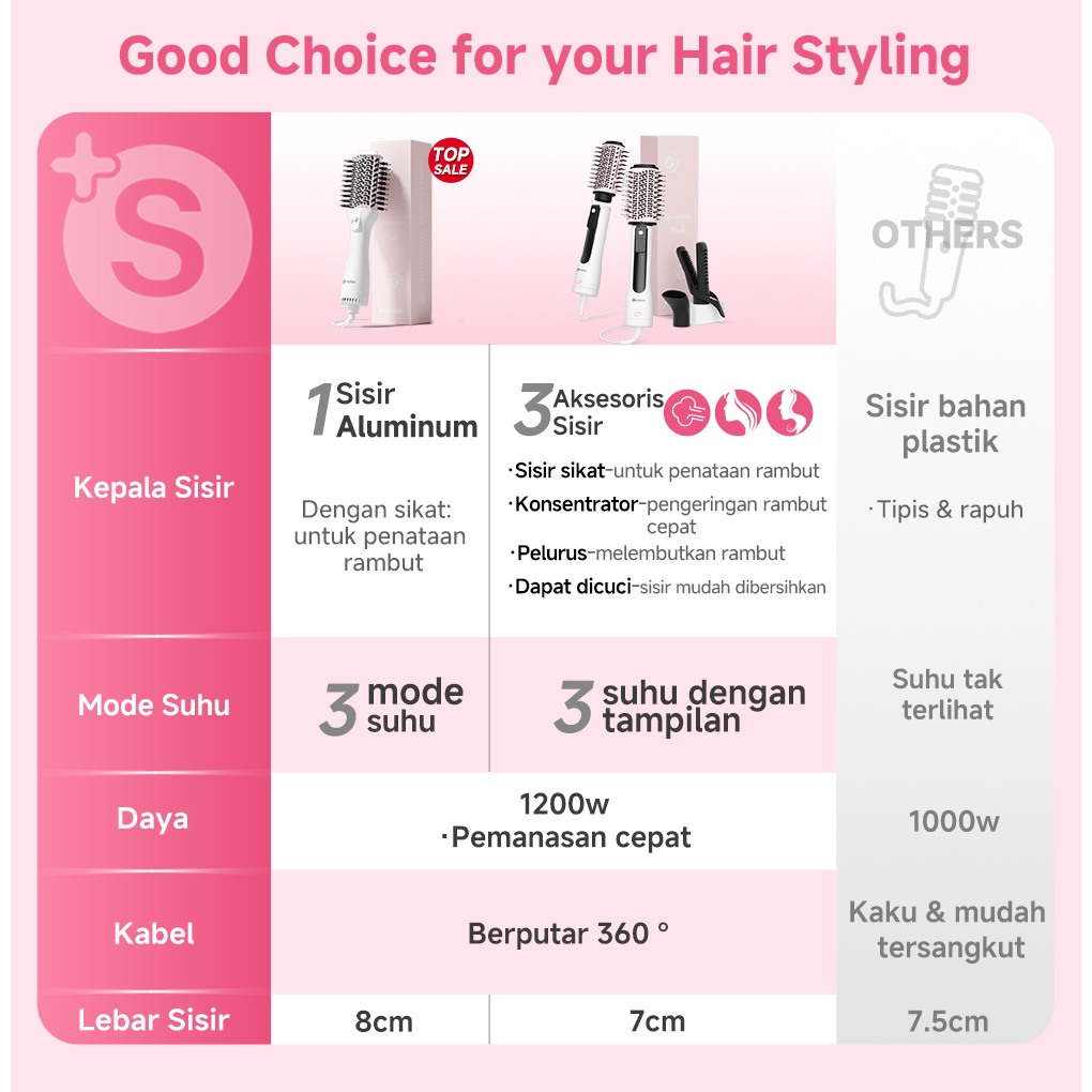 Simplus Pink Hair dryer Sisir penata gaya 4in1 Penggunaan basah dan kering