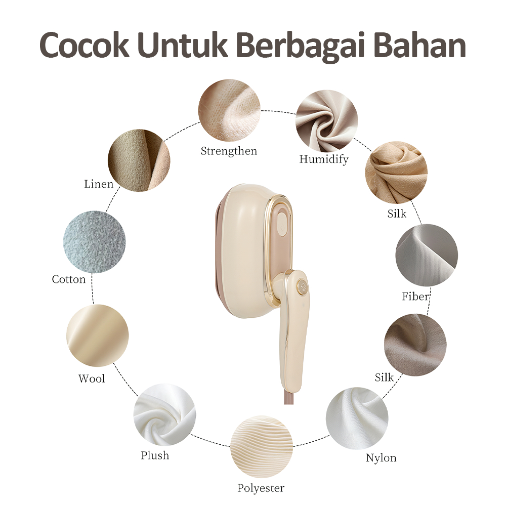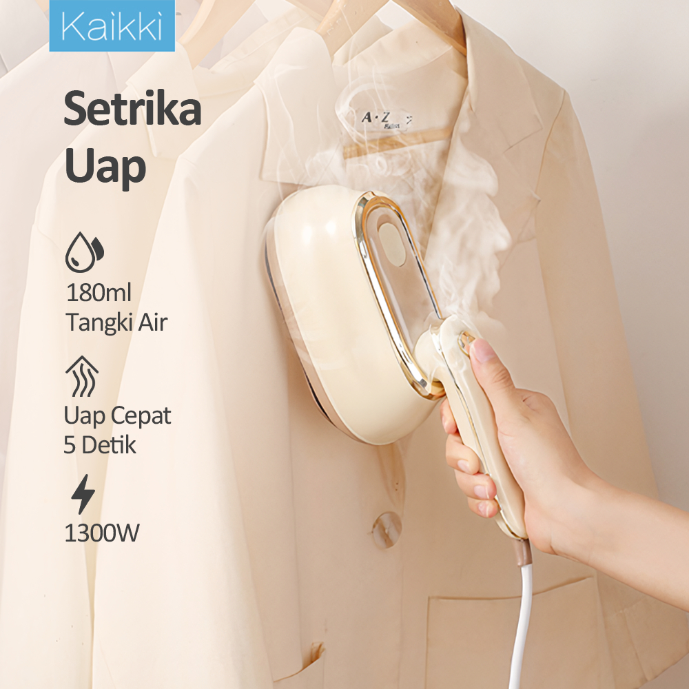 KAIKKI Steamer pakaian portabel yang dapat dilipat, desain genggam, setrika kering dan basah, ideal untuk penggunaan di