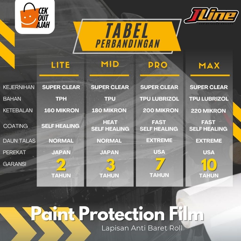PPF JLINE – Paint Protection Film Mobil Self Healing | Anti GoresAnti KuningAnti Pudar | PPF Premium Bening | Pelindung Cat Mobil Super Clear