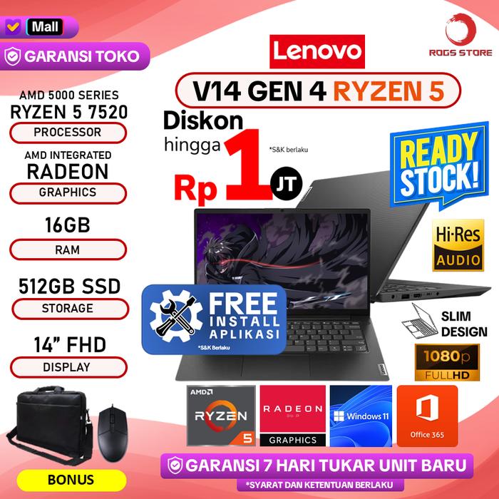 Laptop Lenovo V14 G4 Ryzen 5 7520 16Gb 1Tb Windows 11+Office 14" Fhd - Standard, 512Gb