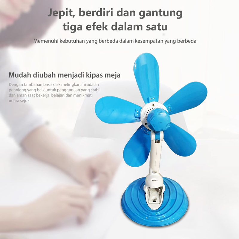 G.S.D Kipas Angin jepit 3-in-1 20Wdinding,duduk,jepit, 5 bilah, kipas kecil hemat energi, kipas rumah tangga senyap