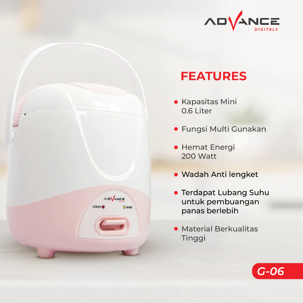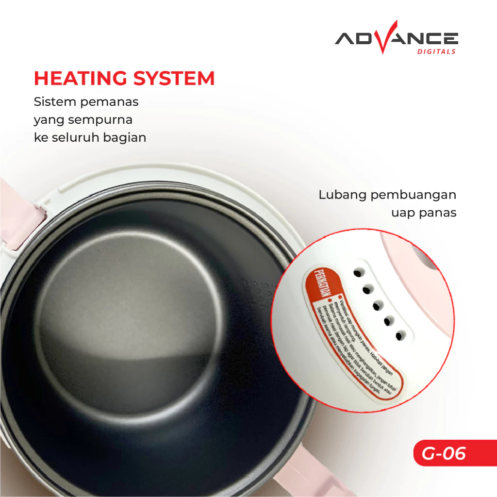 Advance G06 Rice Cooker / Magic Com Mini Serbaguna 0.6 Liter 3 in 1 BONUS Gelas Ukur dan Sendok Nasi
