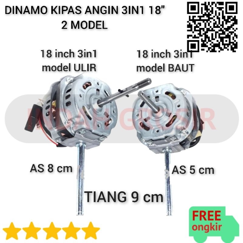 Dinamo Mesin kipas 3in1 18 inch ( As ulir 8cm dan As baut 5cm )
