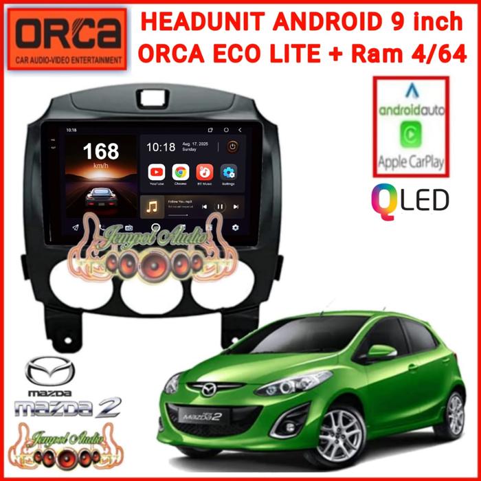 HEAD UNIT ANDROID ORCA ECOLITE PLUS 9 INCH MAZDA 2 2010 UP NON SKY