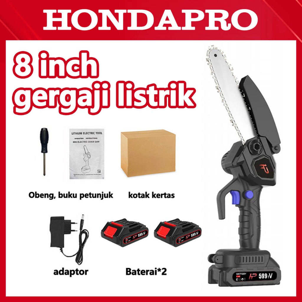 Gergaji Listrik Rantai HONDAPRO 8 Inch Mesin Pemotong Kayu Mini Potong Kayu 2 Baterai Modern Senso Bensin Elektrik