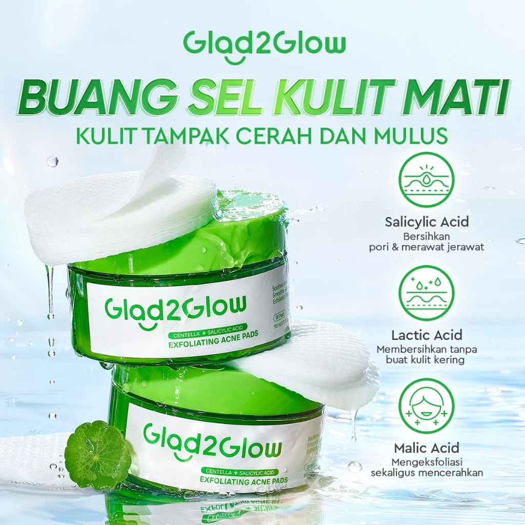 Glad2Glow Centella Salicylic Acid Exfoliating Acne Pads Gentle Eksfoliasi Kulit Jerawat Kulit Sensitif (30 pads)