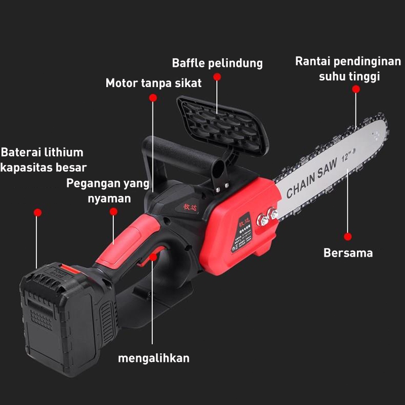 Gergaji Listrik Rantai Reaim 12 Inch Mesin Pemotong Kayu Mini Potong Kayu 2 Baterai Modern Senso Bensin Elektrik