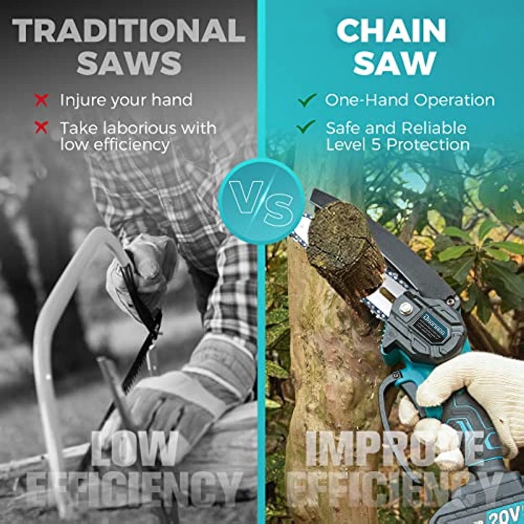 Gergaji Listrik Rantai Dagmara 6 Inch Mesin Pemotong Kayu Mini Potong Kayu 2 Baterai Modern Senso Bensin Elektrik