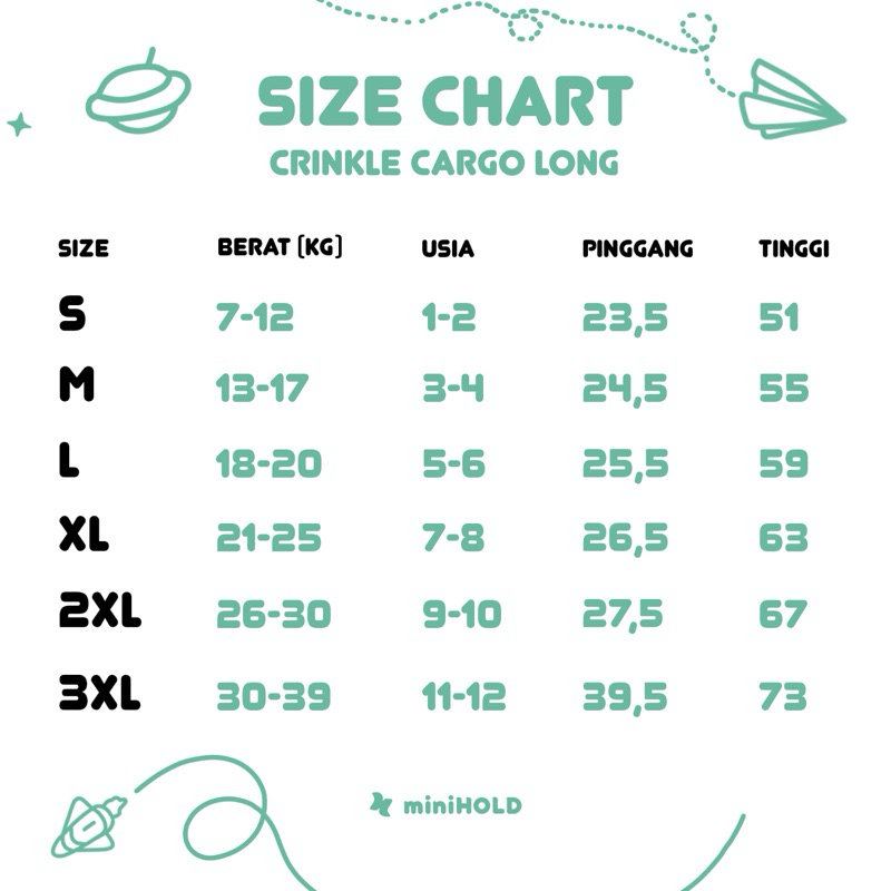 Celana Panjang Cargo Anak Minihold Long Pants Parasut Crinkle Usia 1-12 Tahun