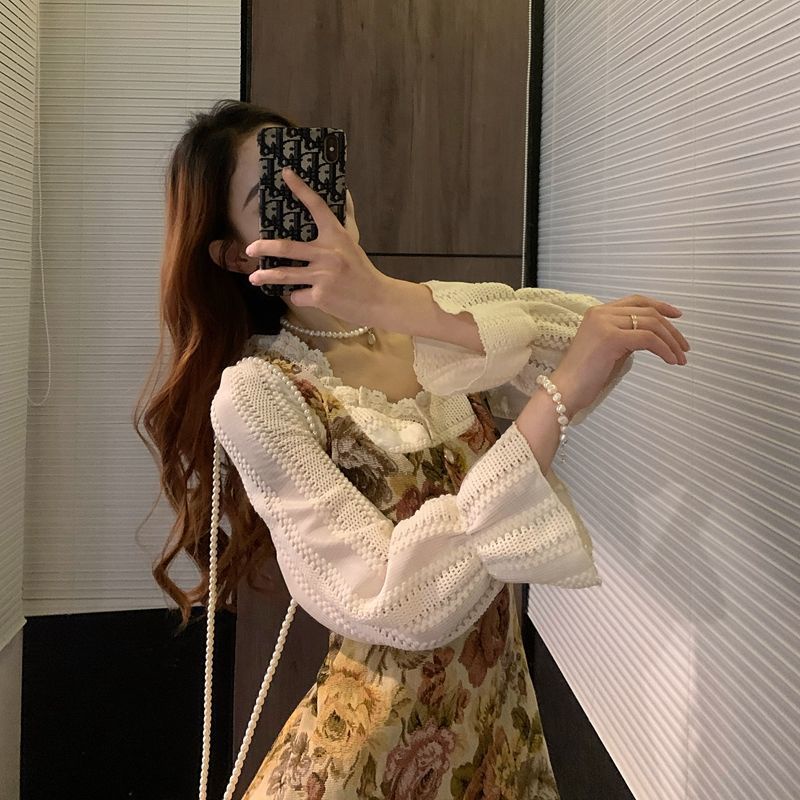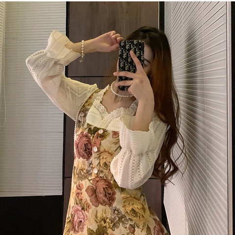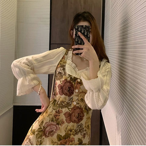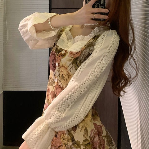 Dress Retro 25Oclock French Tea Break Lukisan Cat Minyak Rok Panjang