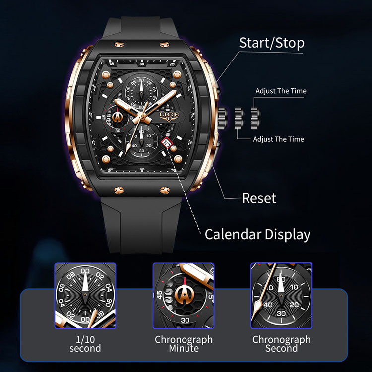 LIGE Watches Pria Sport 50M Tahan Air Kuarsa Pria Jam Tangan Bercahaya Pria watch men Jam Tangan Keren Kekinian