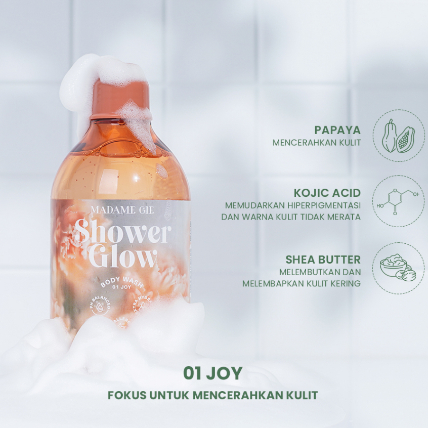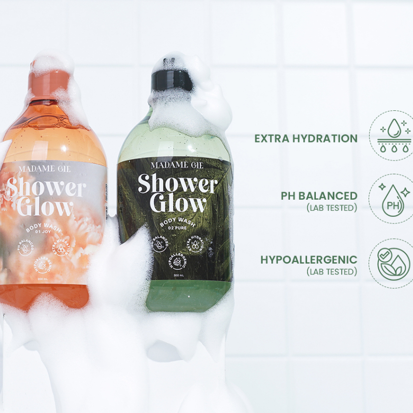 Madame Gie Shower Glow - Hypoallergenic Sabun Mandi - Shower Scrub - Shower Gel