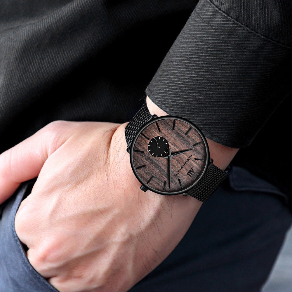 Jam Tangan Pria Hannah Martin Quartz Kayu Tipis Model 1002-2