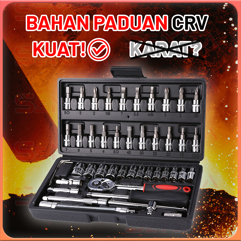 Set Kunci Socket 46 Pcs Sekita Full Set Pas Ring L Motor