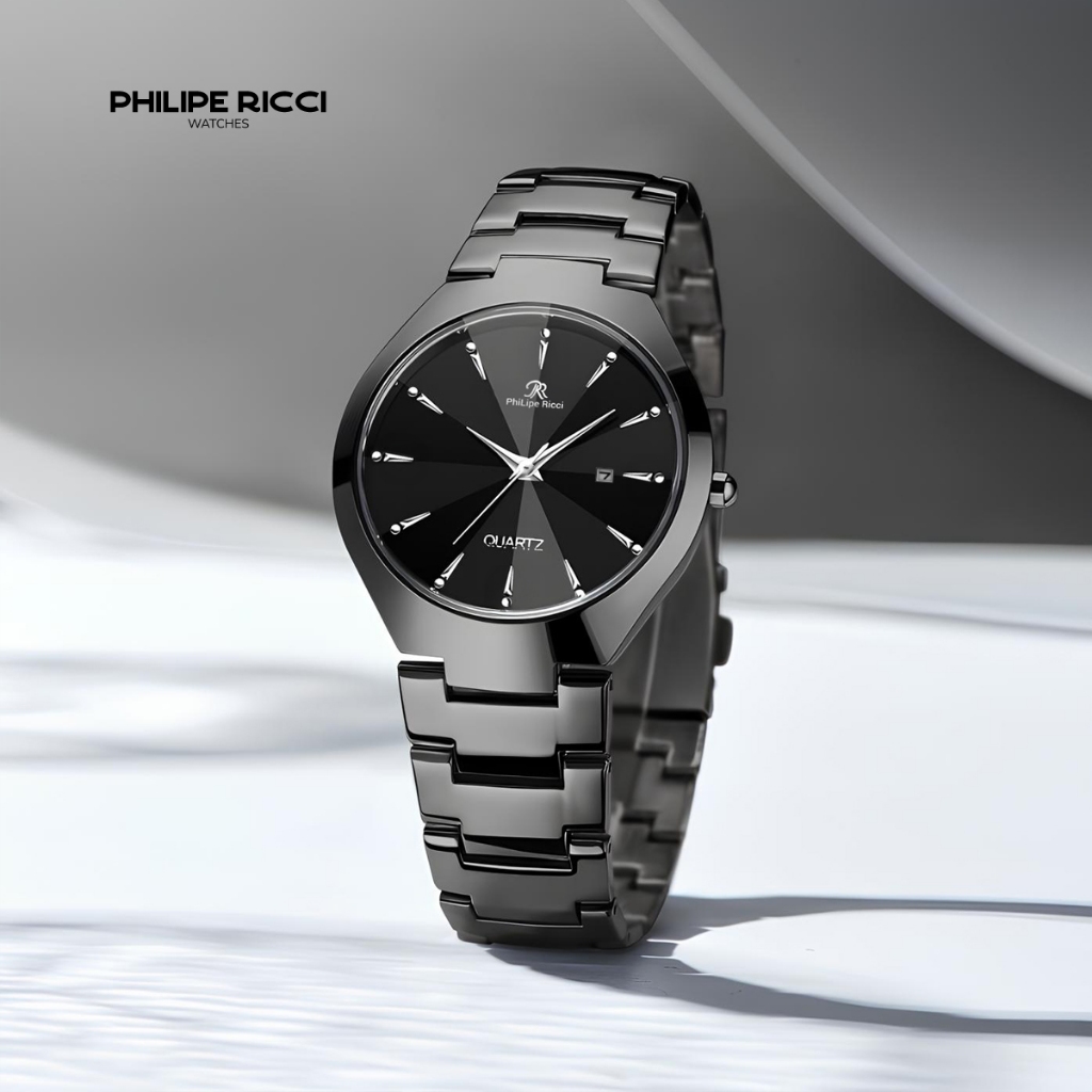 Jam Tangan Pria Philippe Ricci Rantai Analog Hitam Tipis Stylish 7597
