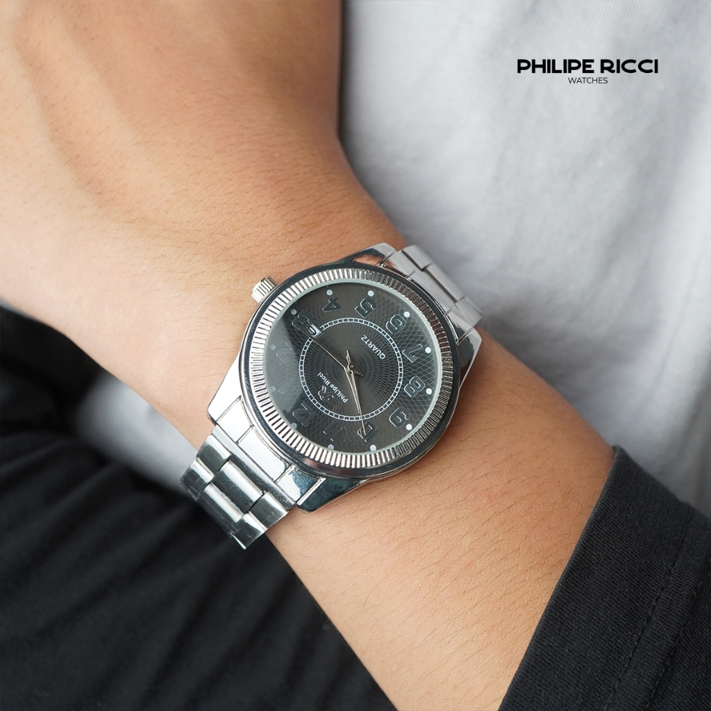 Jam Tangan Pria Philippe Ricci Rantai Kecil Analog Hitam Trendy 8060C