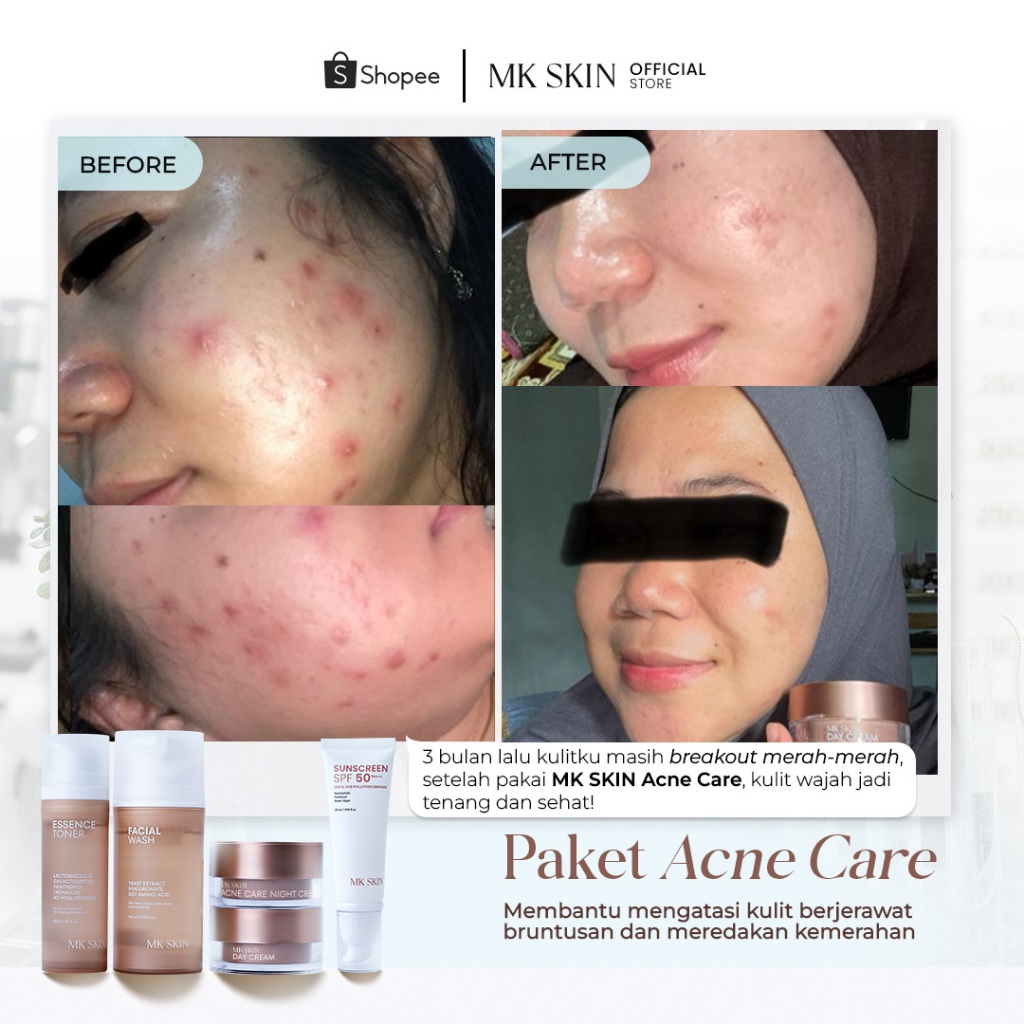 Paket Skincare Mk Skin Wajah Acne Facial Wash Toner Day & Night Cream Kulit Sensitif & Berjerawat