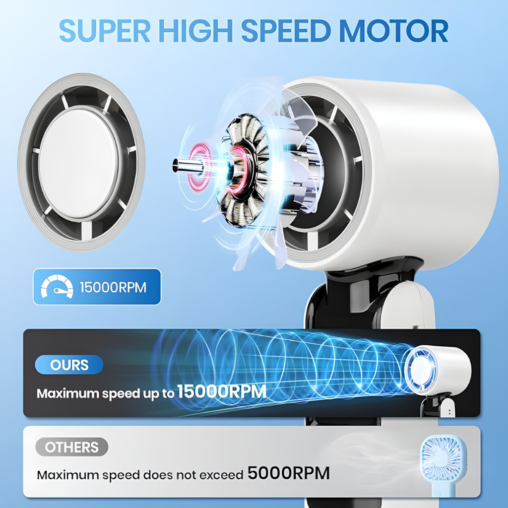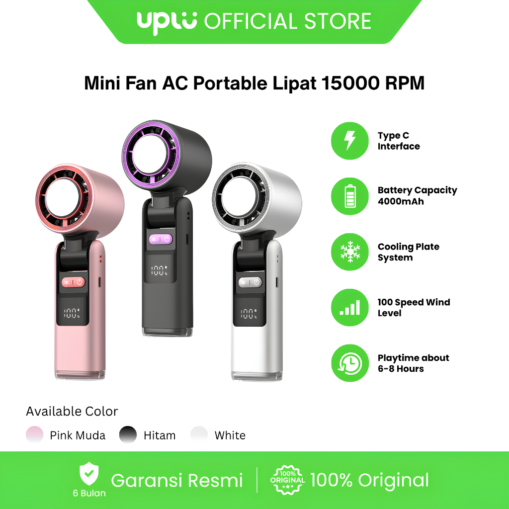 Kipas Mini Uplu Fan02 Portable 4000mah Turbo Lipat Genggam Led Free Lanyard